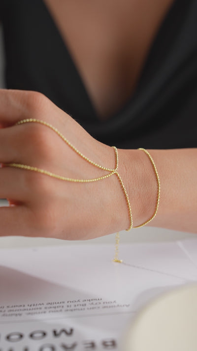 Bewahren Sie die Handkette in ihrer Schmuckbox auf und vermeiden Sie den Kontakt mit Cremes, Parfüm, Alkohol oder anderen Chemikalien, um die Schönheit und den Glanz lange zu erhalten.