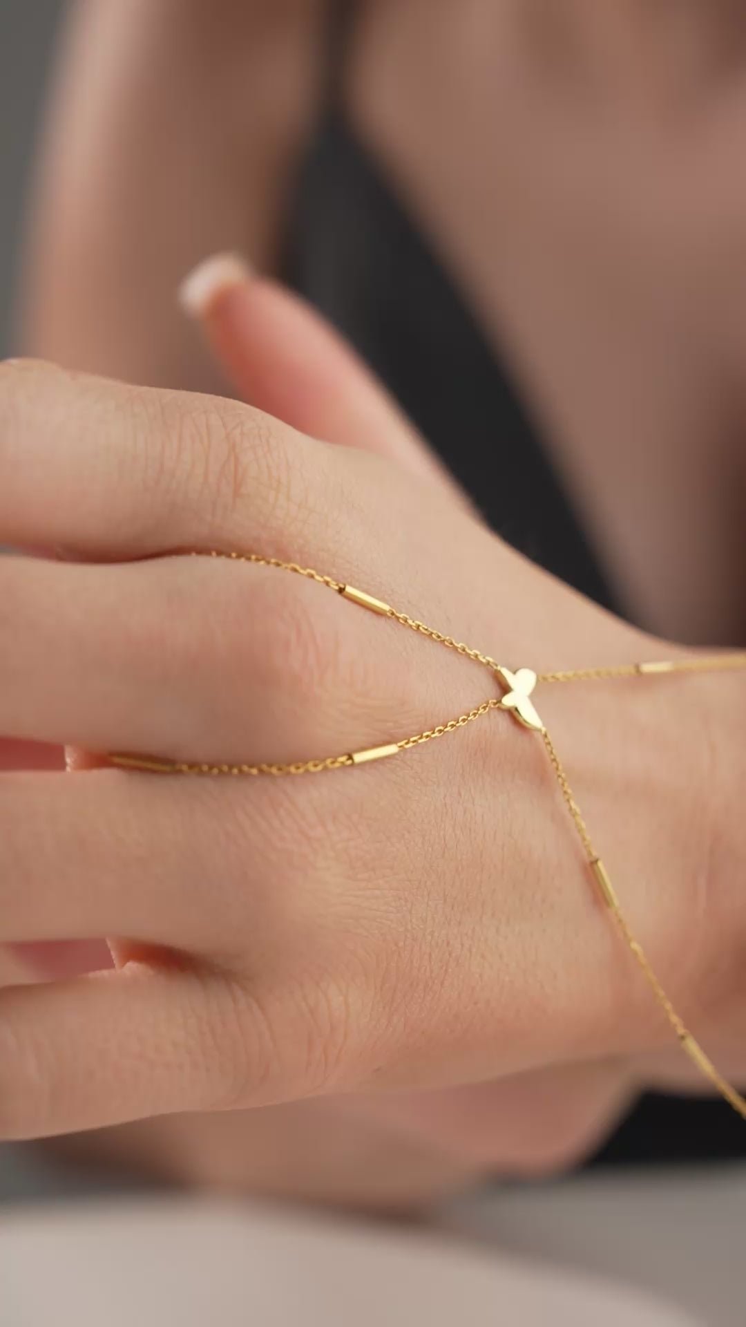 Das filigrane Design legt sich sanft um die Hand und kann perfekt mit anderen Schmuckstücken kombiniert oder solo getragen werden – dezent und dennoch auffallend.
