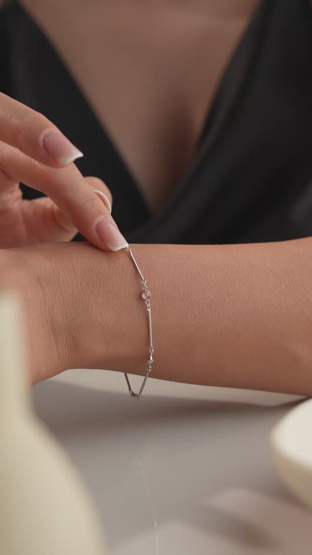 Diese feine Armband aus 925 Sterling Silber vereint zeitlose Eleganz mit moderner Schlichtheit. Das zarte Design lässt sich perfekt mit anderen Schmuckstücken kombinieren oder solo tragen – dezent und dennoch auffallend.