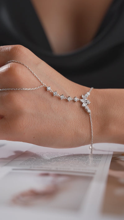 Das filigrane Design legt sich sanft um die Hand und kann perfekt mit anderen Schmuckstücken kombiniert oder solo getragen werden – dezent und dennoch auffallend.